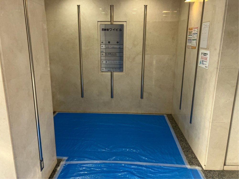 解体工事完了後は、養生の撤去とビル内の清掃作業に取り掛かります。解体時に石膏ボードの粉塵が飛散してしまうので、床はもちろんフロアを全体的に清掃します。すべての養生撤去とエレベーターや廊下などの清掃が完了したら施工完了です。