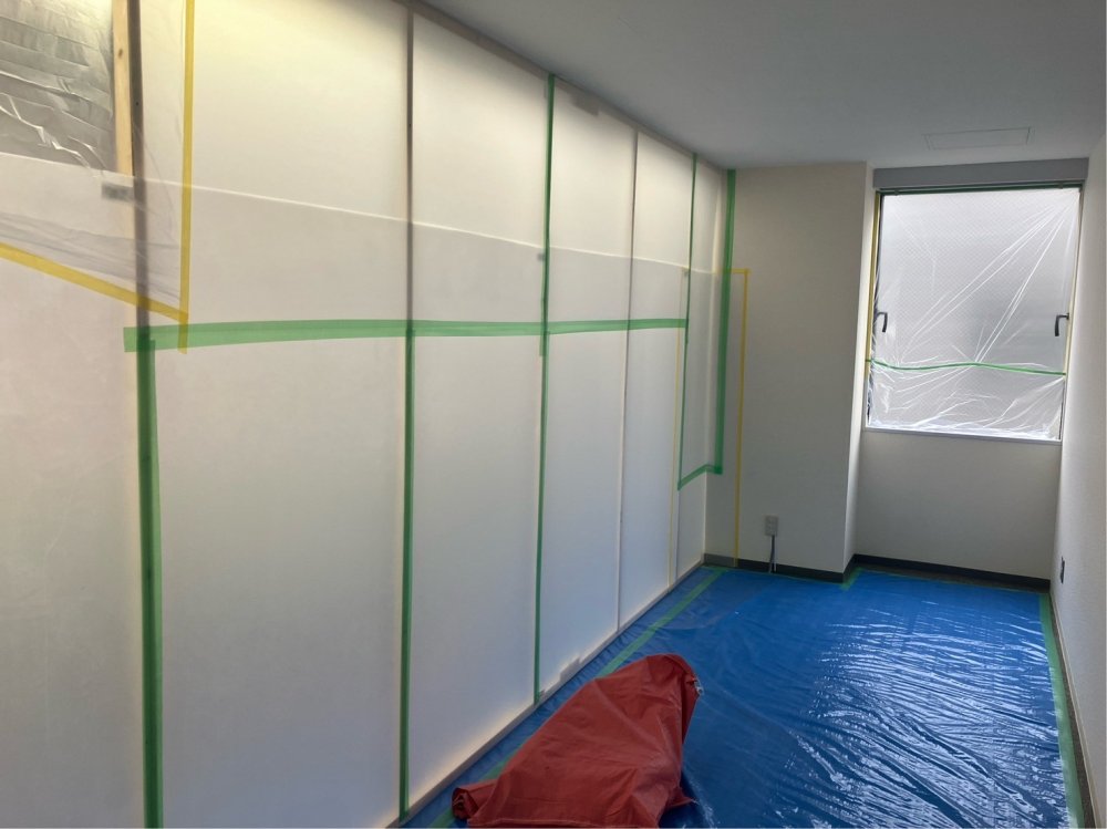 今回は会社が休みになる2日間を利用し、施工日を指定のうえでビルの内装解体工事を行いました。施工が延長してしまうと先方様の営業に影響を及ぼしてしまうため、事前の現場調査や段取りをしっかりと行ったうえで作業に取り掛かりました。パソコンやコピー機などの電子機器がデスク上にある状態で施工を行う必要があり、床とエレベーターに加えて養生をしました。また、ビル内の解体工事で騒音が建物全体に響く可能性があるため、事前に挨拶や声かけを実施してから着工します。