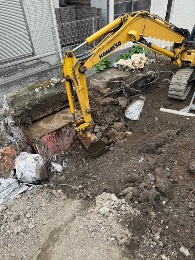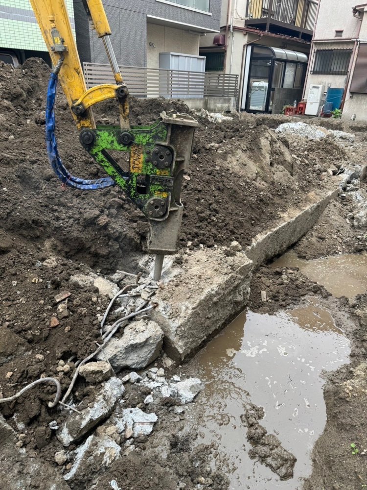東京都江東区東砂のコンクリート基礎解体工事です。地中に埋設されているコンクリート基礎を完全に撤去するまでが今回の依頼内容になります。